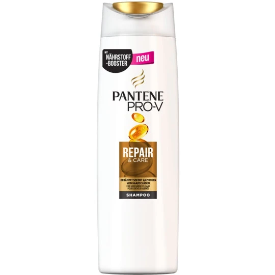 Das Pantene Pro-V Repair & Care Shampoo mit der weiterentwickelten Pantene Pro-V Pflegeformel: Unsere reichhaltige, reparierende Pflegeserie mit Mikro-Pflegestoffen vermindert den Feuchtigkeitsverlust des Haars, damit es gesund und glänzend aussieht. Pantene Pro-V Repair & Care Shampoo bekämpft Anzeichen von Haarschäden, für Geschmeidigkeit und Glanz bei strapaziertem oder trockenem Haar. Für beste Resultate zusätzlich die Pantene Pro-V Repair & Care Pflegespülung sowie die Pflegeprodukte verwenden.